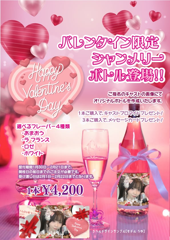 特別な時間を演出するために、キャストさんのラベルが印刷されたオリジナルシャンメリーをご用意しました。お好きな味を選んで、特別な瞬間を一緒に楽しみましょう!